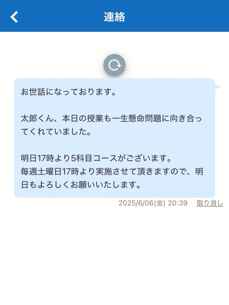 お忙しい中でも気軽にメッセージができるので、お子様の学習面での共有に役立っていると、保護者の方からご好評いただいております☺