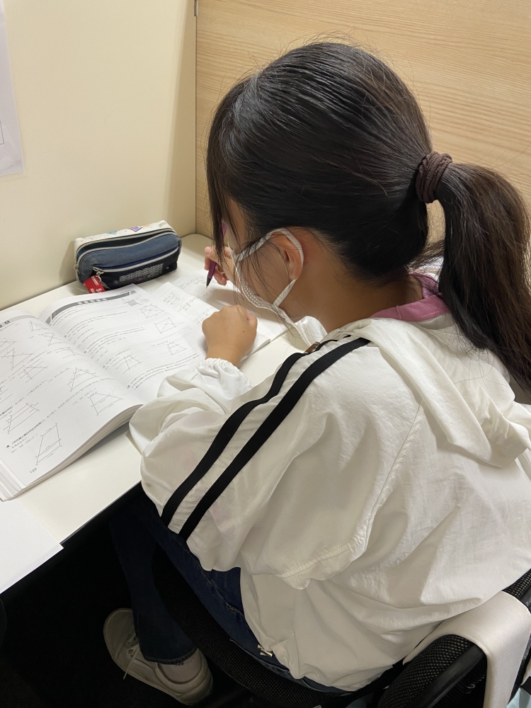 Yさん👧「タイマーを使って、自分が問題を解くのにどれくらい時間がかかるのかを知る、という勉強方法を担当の清水先生に教えてもらいました!今まではテストの時間が足りなくなってしまうことが多かったので、早く問題を解く練習をしたから、中間テストにも活きたのかなと思います✨」