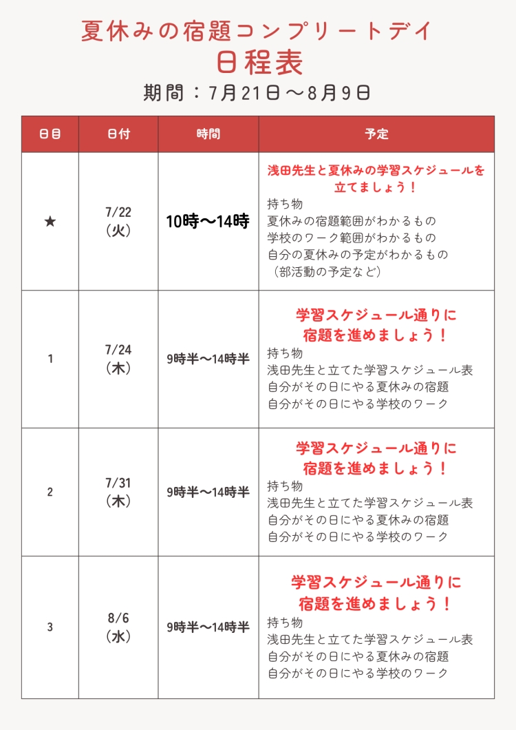 そこで武蔵新城校では、夏休みの宿題コンプリートデイと称して、みんなで宿題を頑張るイベントを実施いたします!!!