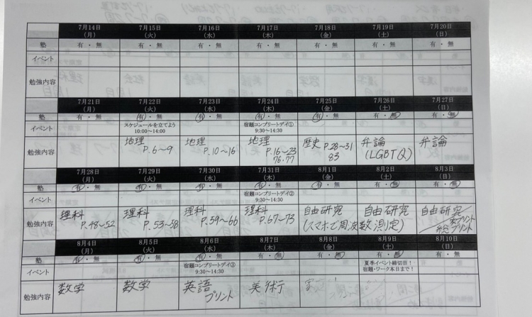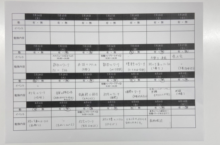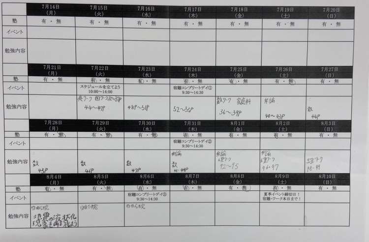 部活や講習で忙しい生徒さんもいるので、全ての日程・時間に参加できなくても構いません!!
