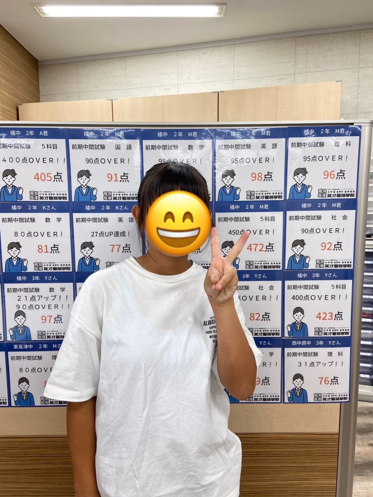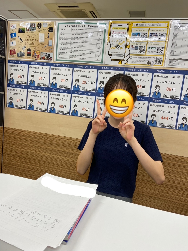 橘中3年Yさんは、今回の期末試験も高得点を狙います✨