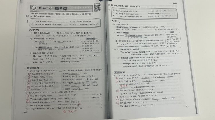 今日は英語の授業だったのですが、動名詞の単元を復習として指導しておりました!