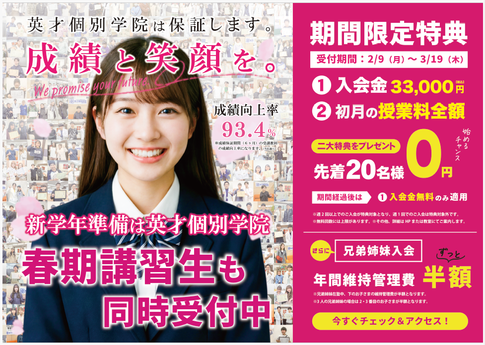 この春に総復習できるかどうかで次の定期テストが変わります。