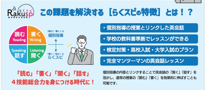 ところが、このらくスピだけは「個別の授業」で通塾していないくても受講できるコンテンツになっています。