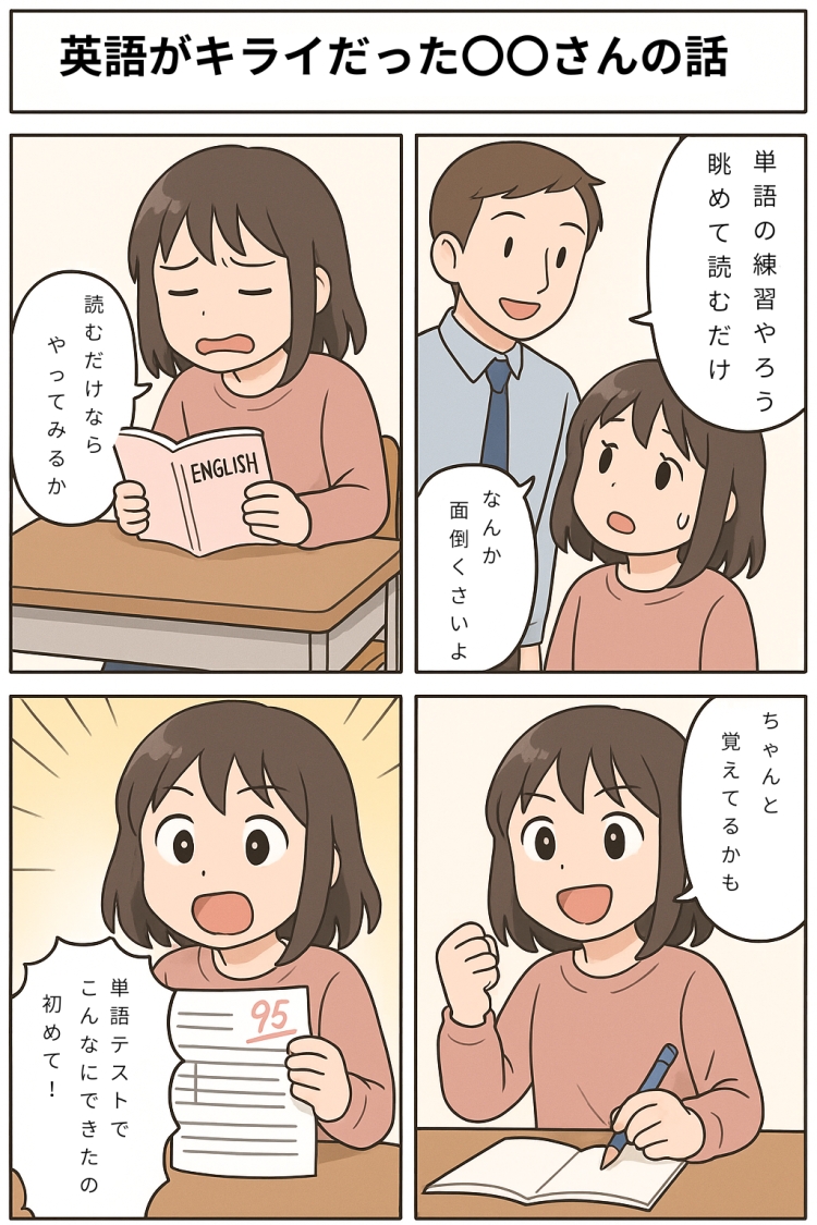 でも実は、“できること”から始めて、“ちょっとの達成感”を積み重ねることが、英語嫌い克服の第一歩になるんです✨