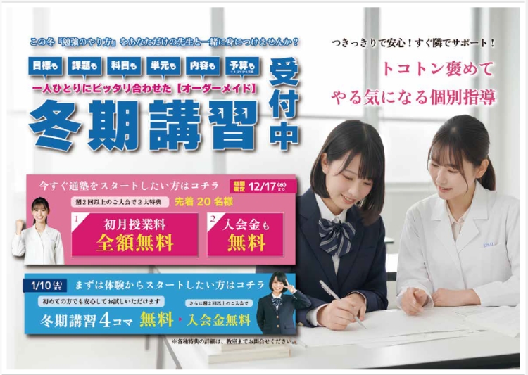 📘 冬期講習4コマ無料+入会金無料!(1月10日まで)