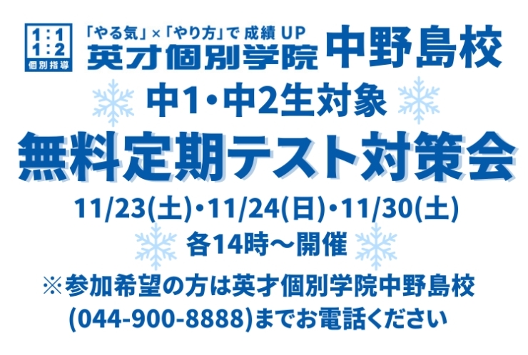 現在英才個別学院中野島校では前期期末試験に向け、定期テスト対策会を実施中です!