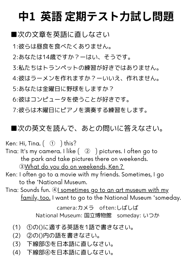 今回中学1年生、中学2年生の皆さんに向けて、英語と数学の力試し問題を作成しました!