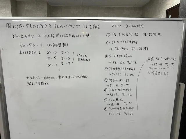 5Lのバケツと7Lのバケツでいろいろな量を表す問題です。