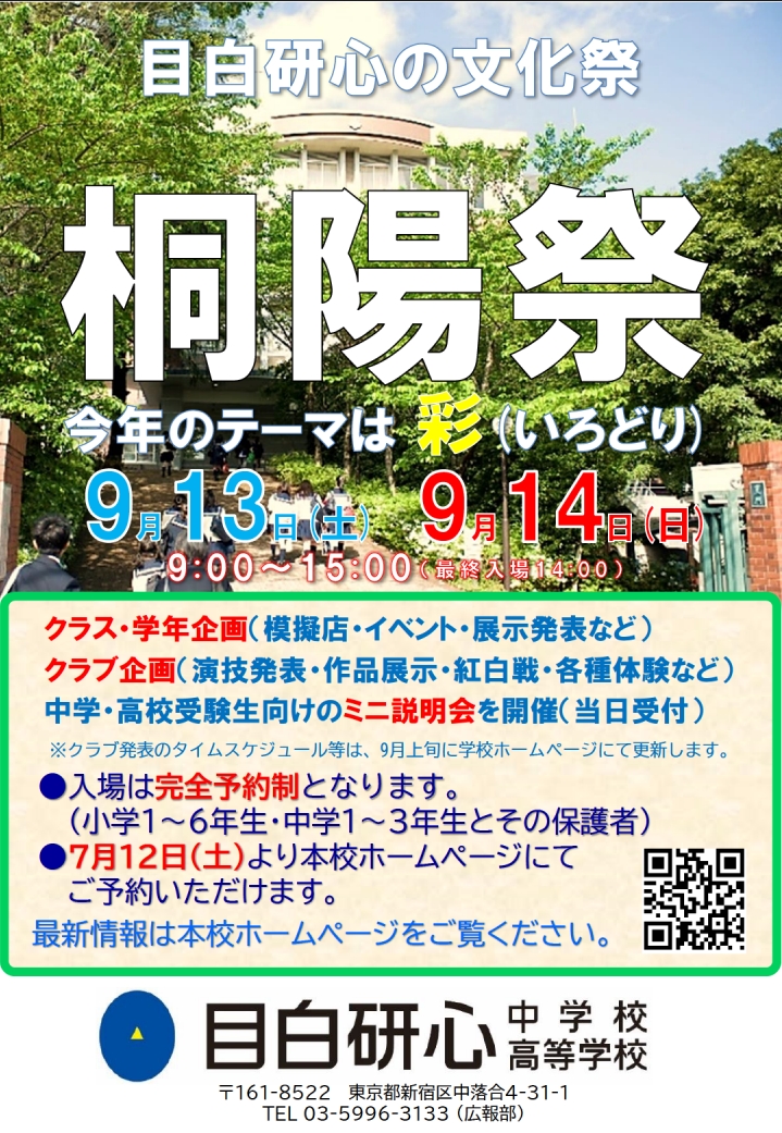 今回は、本校舎から比較的近くの学校の文化祭情報をいくつかお知らせしました。
