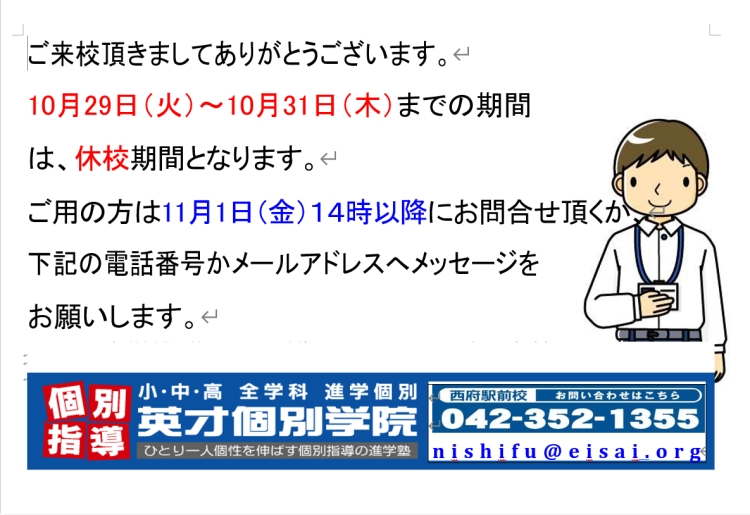2024.10.28 | 教室からのお知らせ