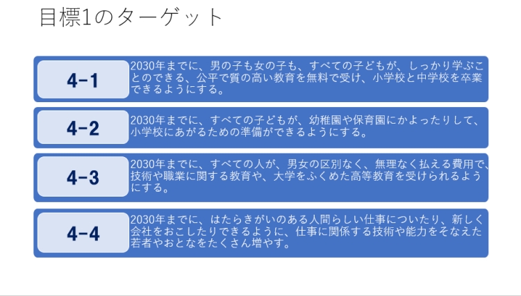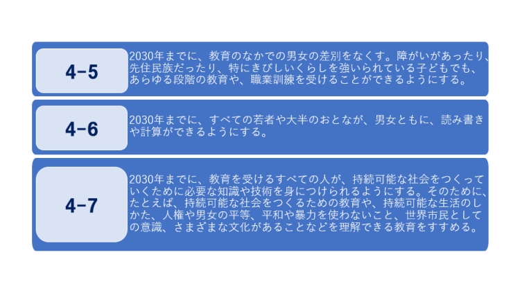 いまこのブログを読んでくださっている学生のみなさんには、教育というテーマは、なかなか難しいものかと思います。しかし、少し視野を広げると不登校の子や日系家庭などが見えてきます。さらに視野を広げれば、世界ではどんな教育になっているのだろうという視点が生まれます。身近なことから、世界に広げることで、より、SDGsを理解することができます。どんどん学んでいきましょう!!