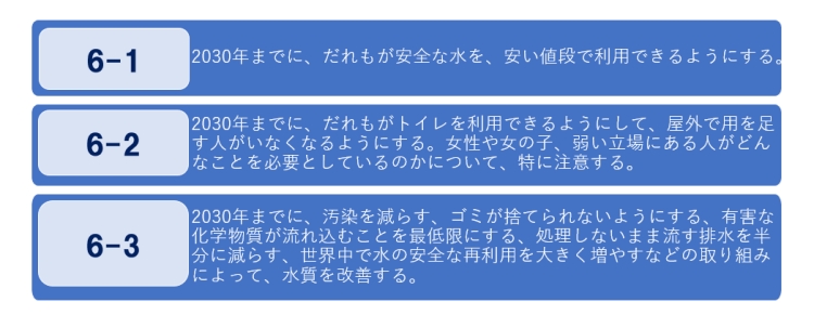 ・安全に管理された水:自宅にあり、必要な時に得られ、排泄物や化学物質に汚染されていない水源から得られる水👉こうした水を得られない人は世界に約22億人(4人に1人)います。