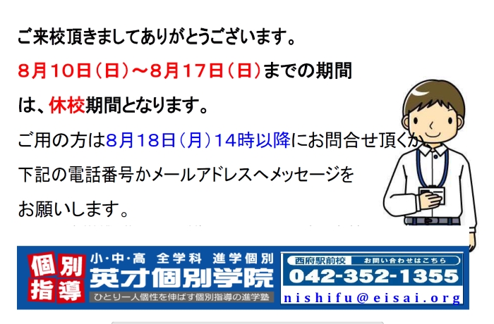 西府駅 府中市西府町の個別指導学習塾【英才個別学院府中西駅前・分倍河原校】よりお知らせ致します。