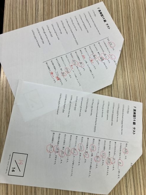 週に一度テキストから講師が選抜した英単語15問程度のテストを行っています!