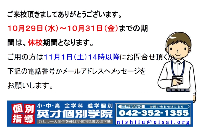 西府駅 府中市西府町の個別指導学習塾【英才個別学院府中西駅前・分倍河原校】よりお知らせ致します。
