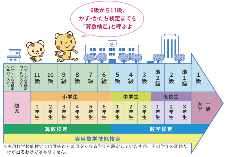 自分の実力に応じて挑戦できる検定試験です。学校のテストとは異なり、👉計算力👉思考力👉応用力など、総合的な数学力が問われるのが特徴です。