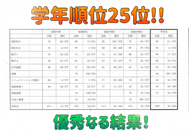 コツコツ塾に通い続け、見事優秀な成績を収めました。