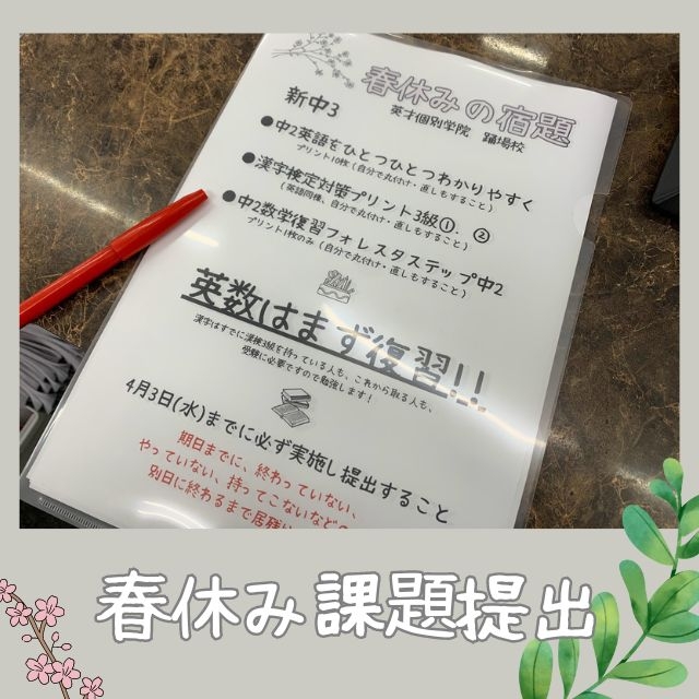 いよいよ受験学年となる新中3生ですが、