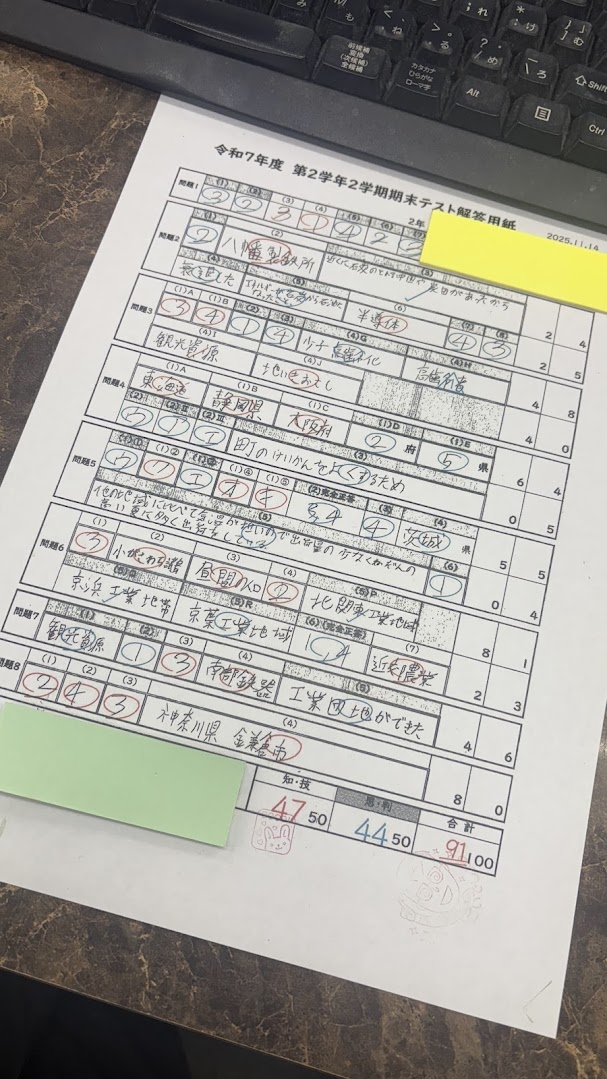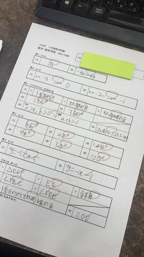 今回の定期テストで、汲沢中のAくんが 大幅に点数を伸ばし、