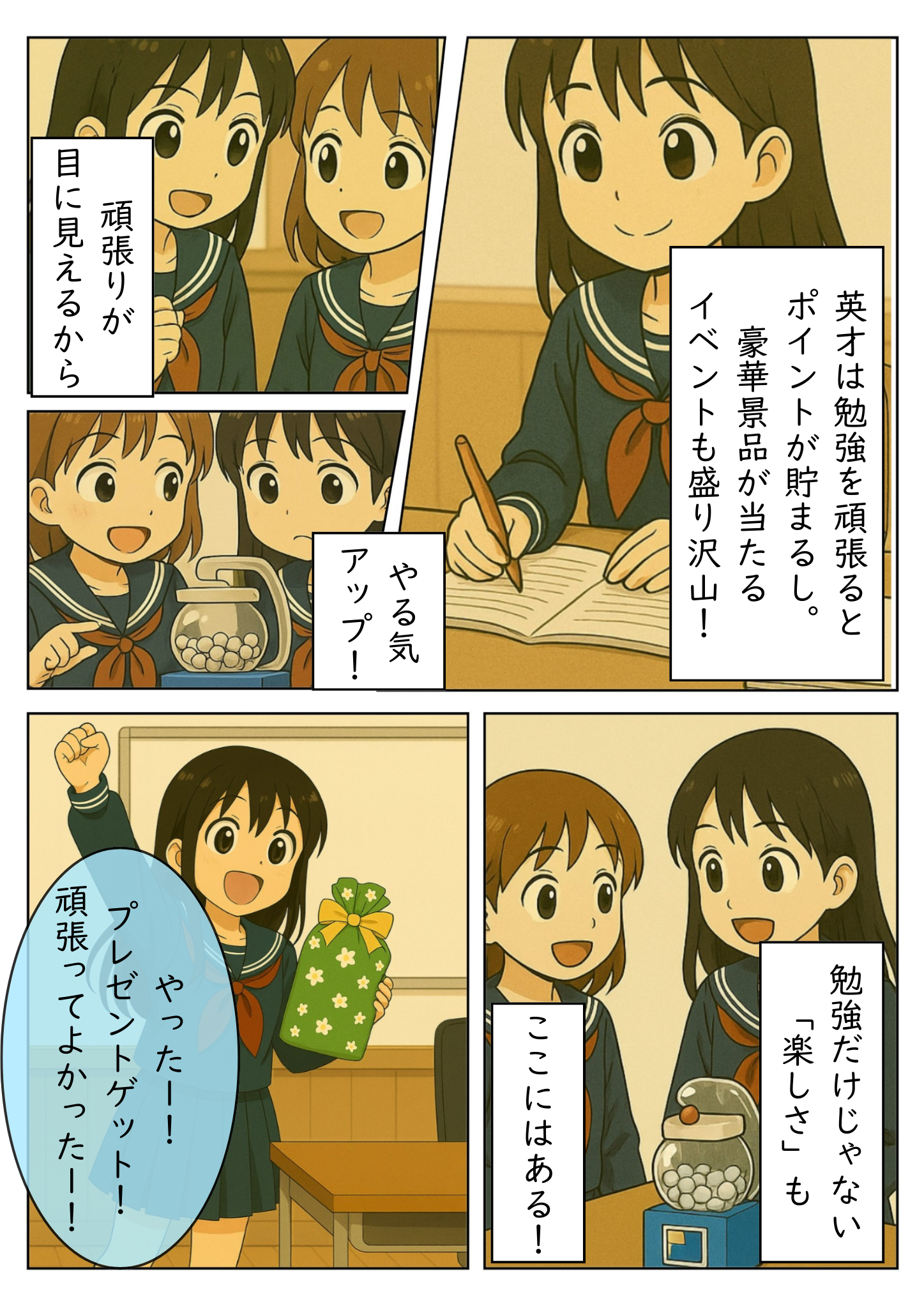 点数が思ったより伸びない主人公のミキ。学校の友達からの紹介でお花茶屋校に通い見事に合格するというストーリです🔥