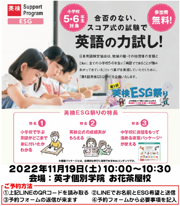 英検ESGのご予約も可能です!