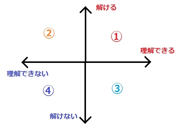 例えば、問題が解けるかどうか、それが理解できているかどうかの表をまとめてみてみましょう。