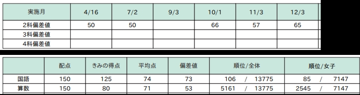 算数の偏差値は30台からのスタートが偏差値50を超えてくれました!