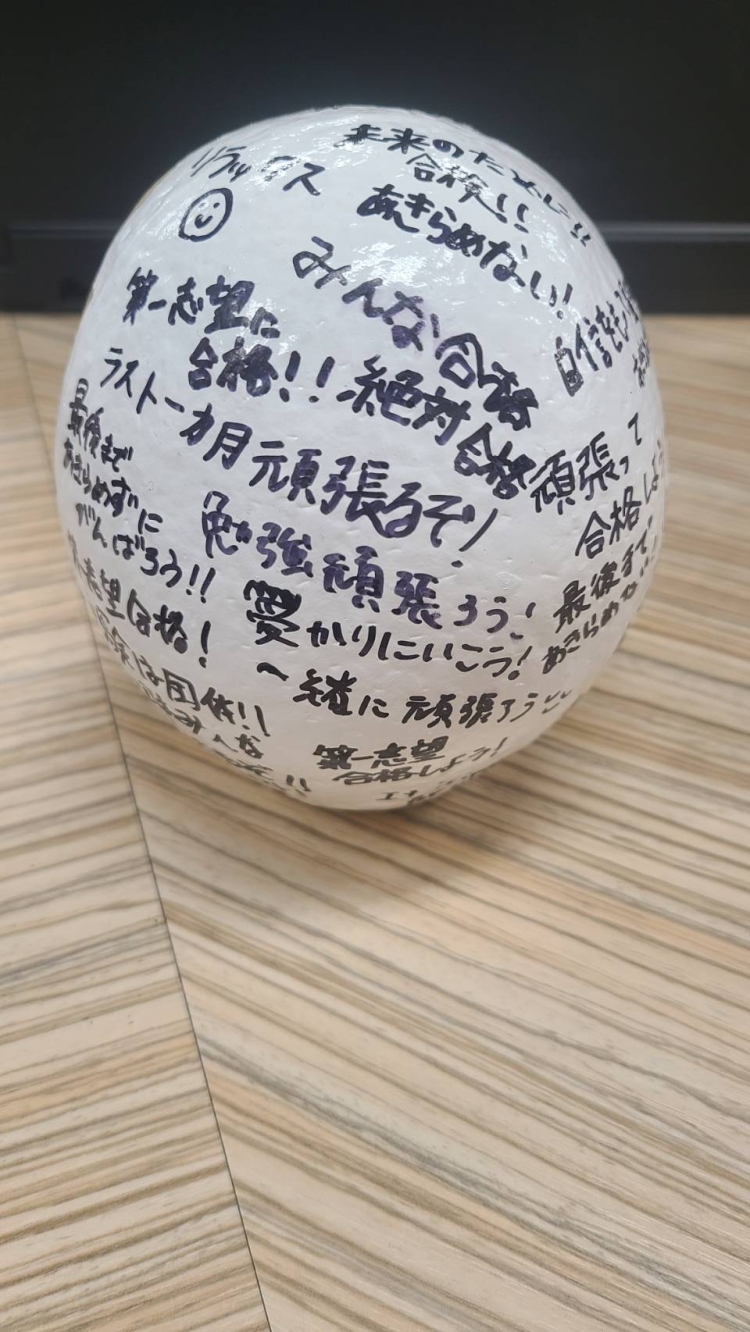 例年、皆さんお互いを激励するメッセージや、英語でのメッセージ、中には漢文で書いてくる生徒さんもいます!