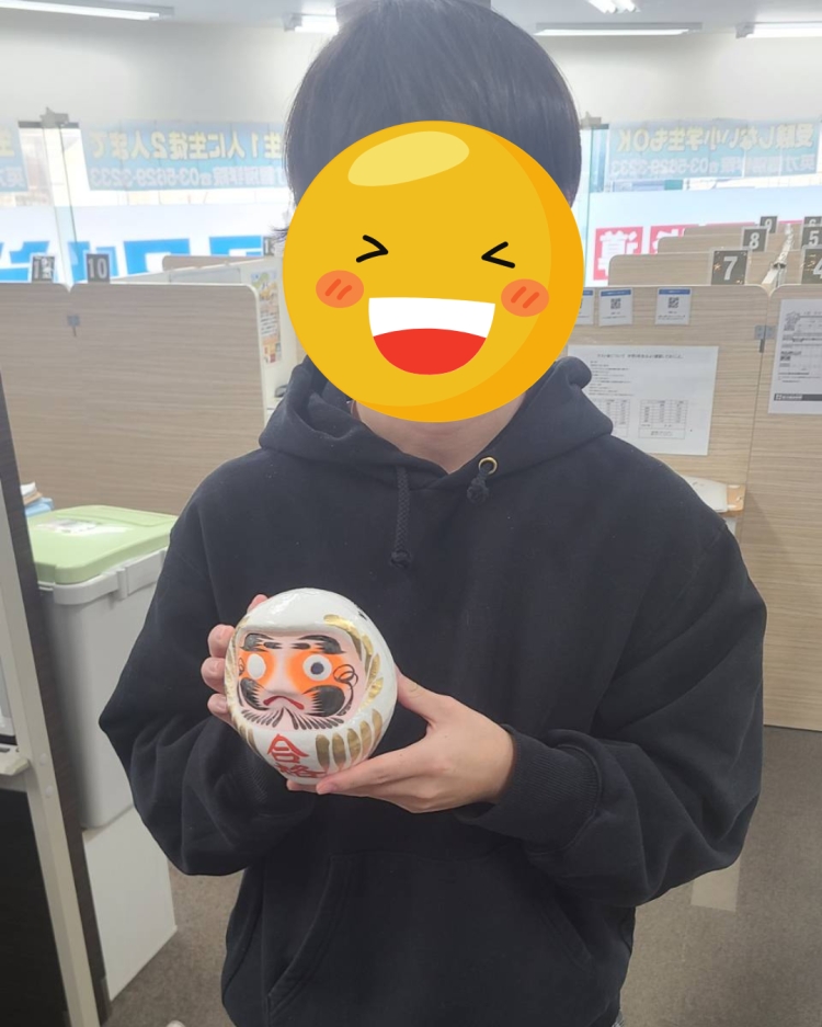特に漢文で書いてきた当時高校3年生の生徒さんは、共通テストで漢文満点を達成するなど、ご利益感じちゃってる人もたくさんいます😁😁 今年のだるまの目入れは高校3年生のT.O.くんに依頼!受験生全員の願いを込めて書いてくれています!