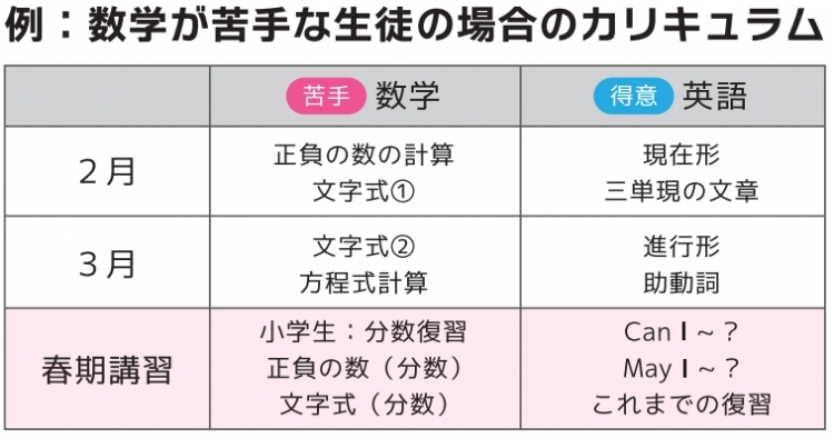 春期講習では、生徒さんに合わせてオリジナルのカリキュラムを作成します。