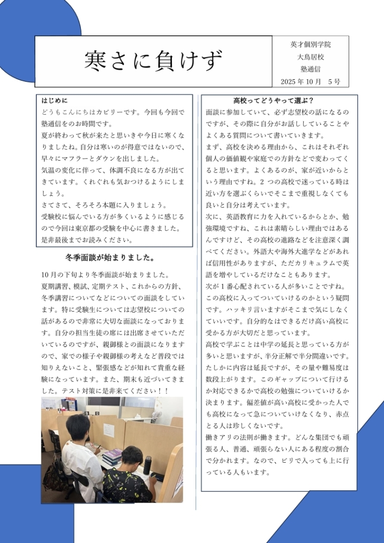第五号 塾通信(2025年10月)