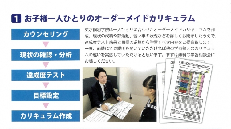 英才個別学院は一人ひとりに合わせてオーダーメイドカリキュラムを作成。