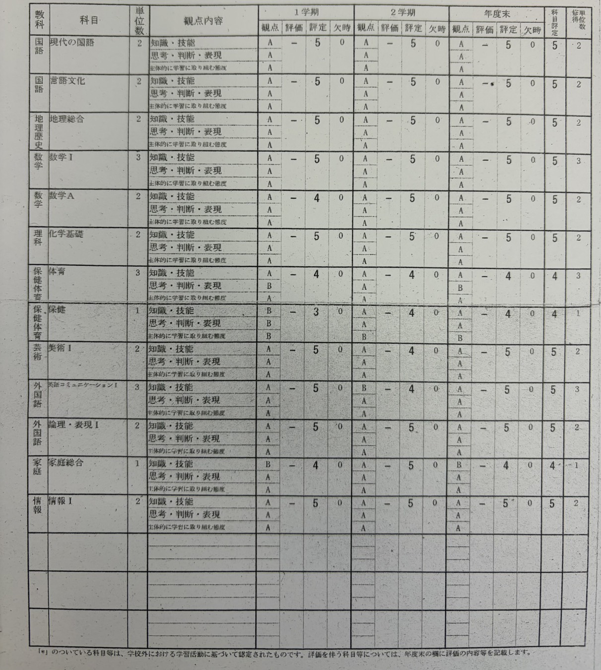 現高校2年生|高校1年次の成績について