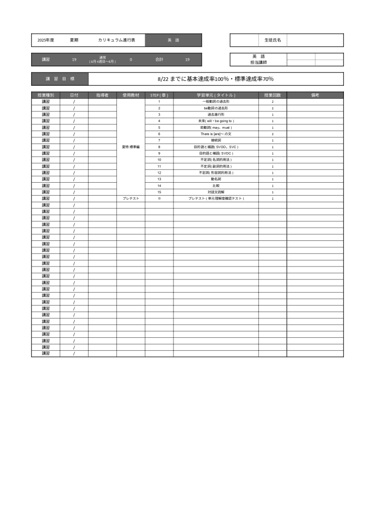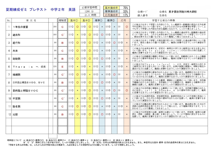 英才個別学院 川崎大師校では、夏の学習を以下のように構成しています。