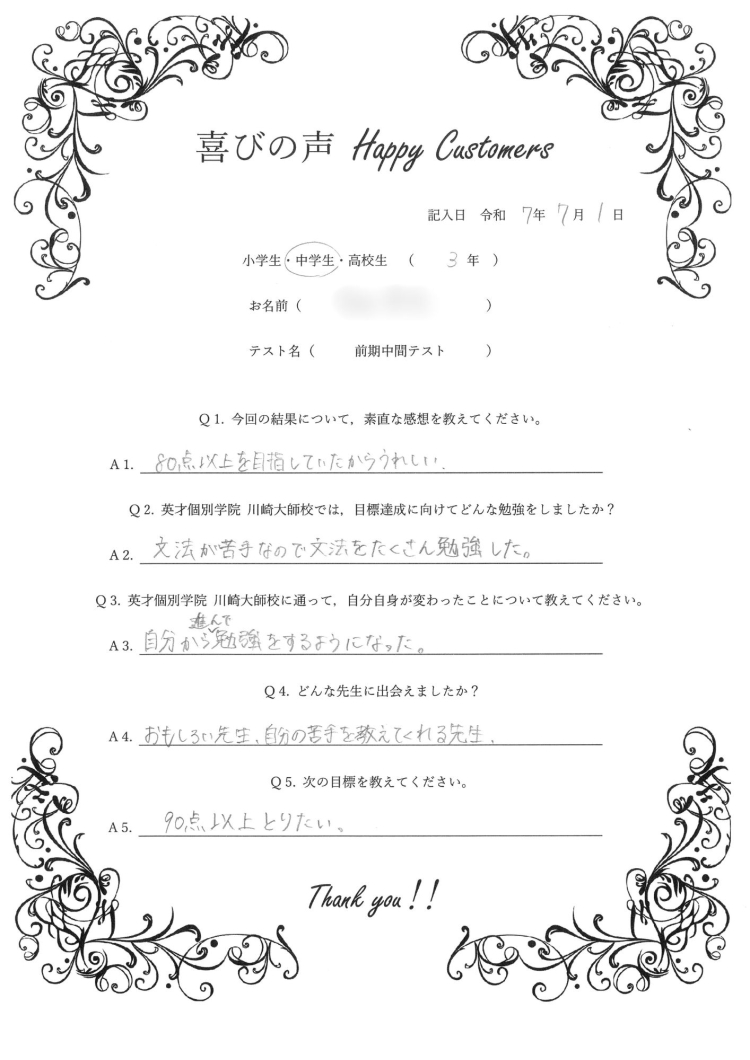 2025年度 前期中間テスト 国語 84点 達成!!