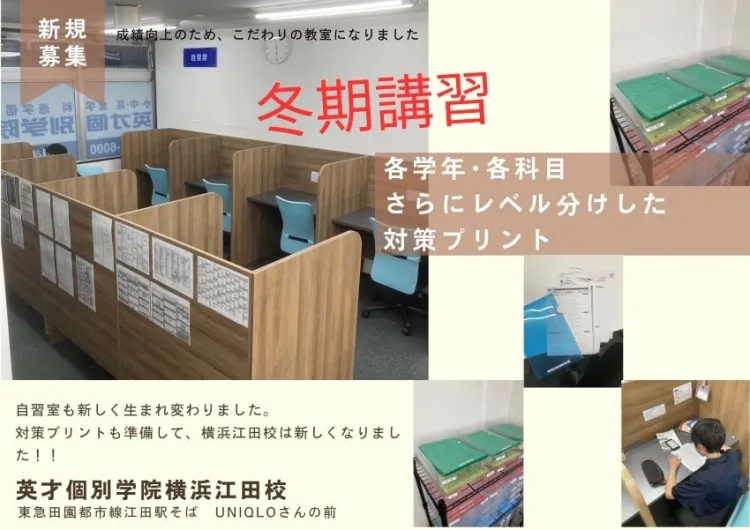 無料の個別学習相談も随時受け付けておりますので、気になることがあればお気軽にご相談ください!市が尾駅、あざみ野駅から通っている生徒も多く、横浜江田校は東急田園都市線江田駅すぐそばにあります。皆さまのご来校をお待ちしております!