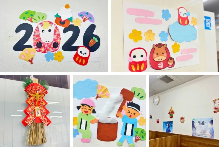 生徒さんや講師の先生にもお手伝いいただき、教室の雰囲気がガラッとお正月に🎍