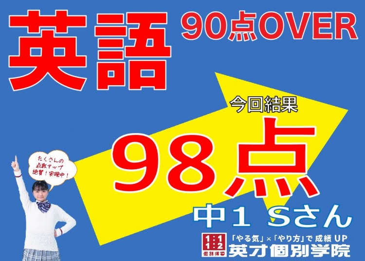 中1Sさん、英語98点です!