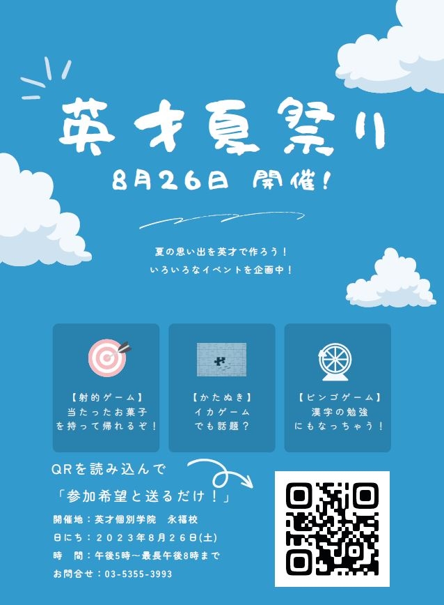 「英才夏祭り」がいよいよ今週末に!