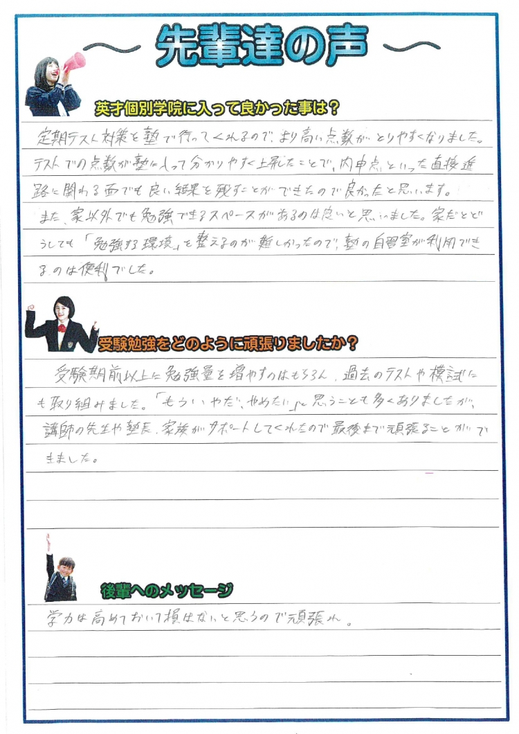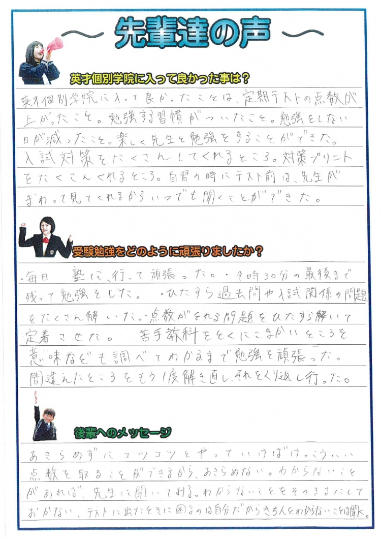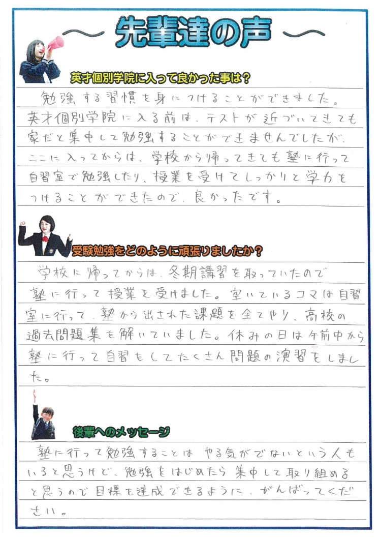 合格した生徒の声をでできるだけ紹介します。