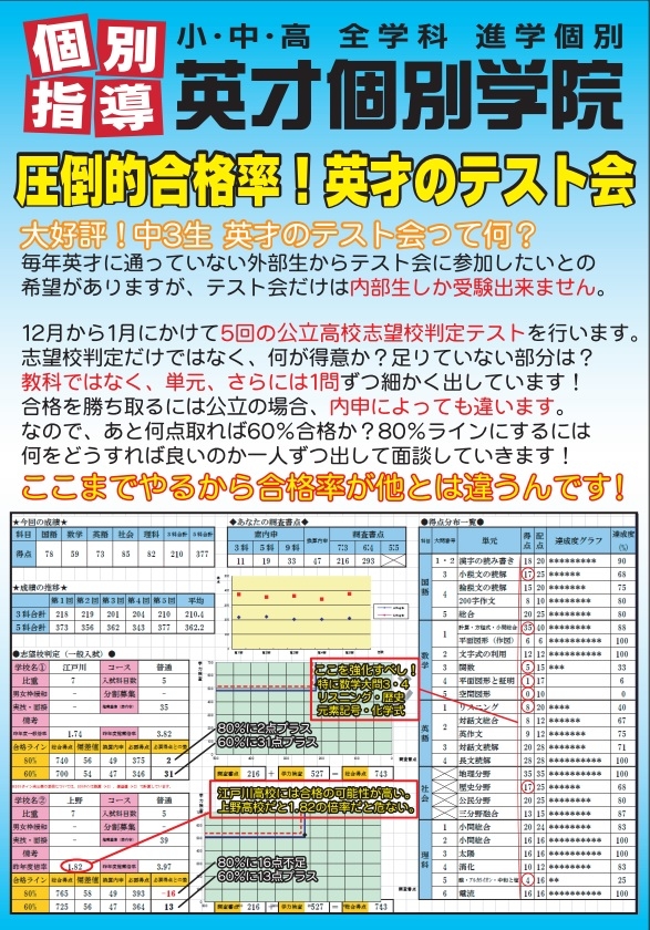 12月からは都立入試対策として模擬テストを教室で5回行います。