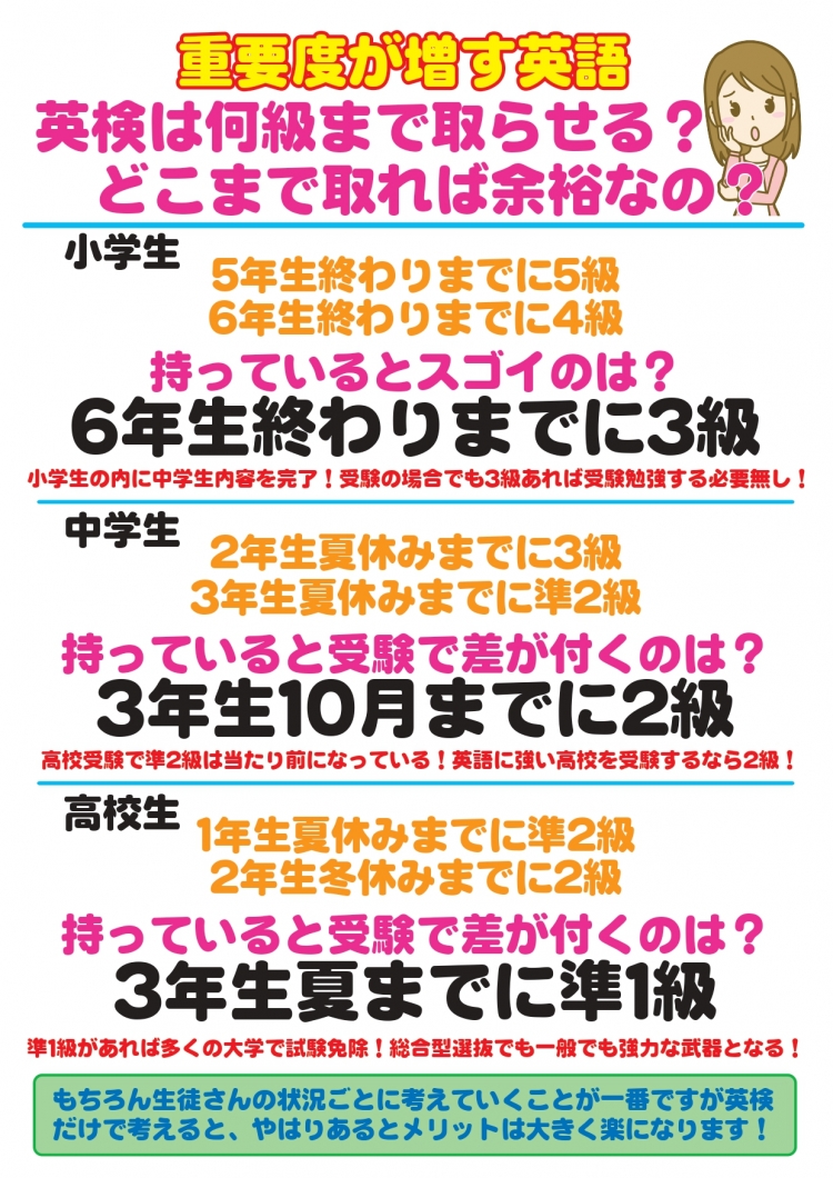 2年生夏休みまでに3級