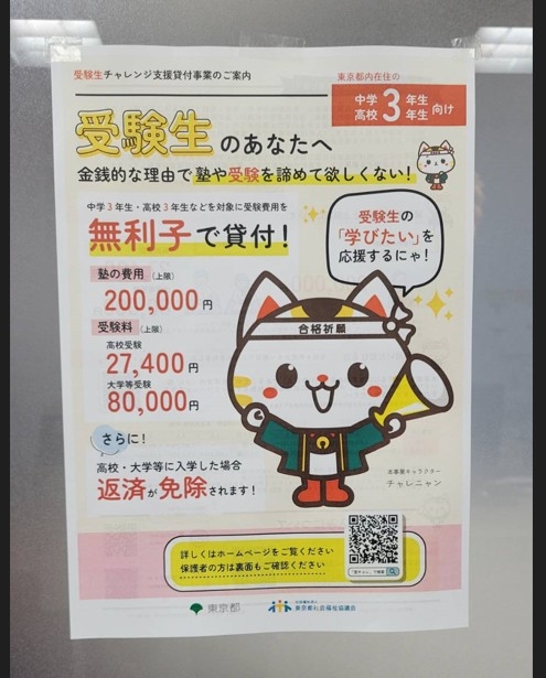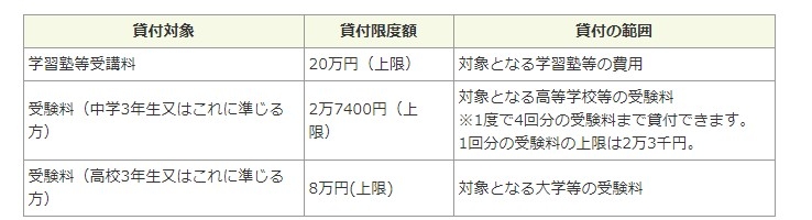 さらに今年から、習塾等の費用をサポートするものと、高校・大学等の受験料をサポートするものの2種類に増えました!