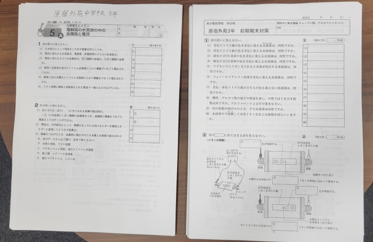 英才個別学院では、夏休み中でもテスト期間から逆算して、学校のワークの進度チェック、定期テスト対策プリントの進めるタイミング等、細かく考えています。今回もテスト対策プリントを用意致しました。
