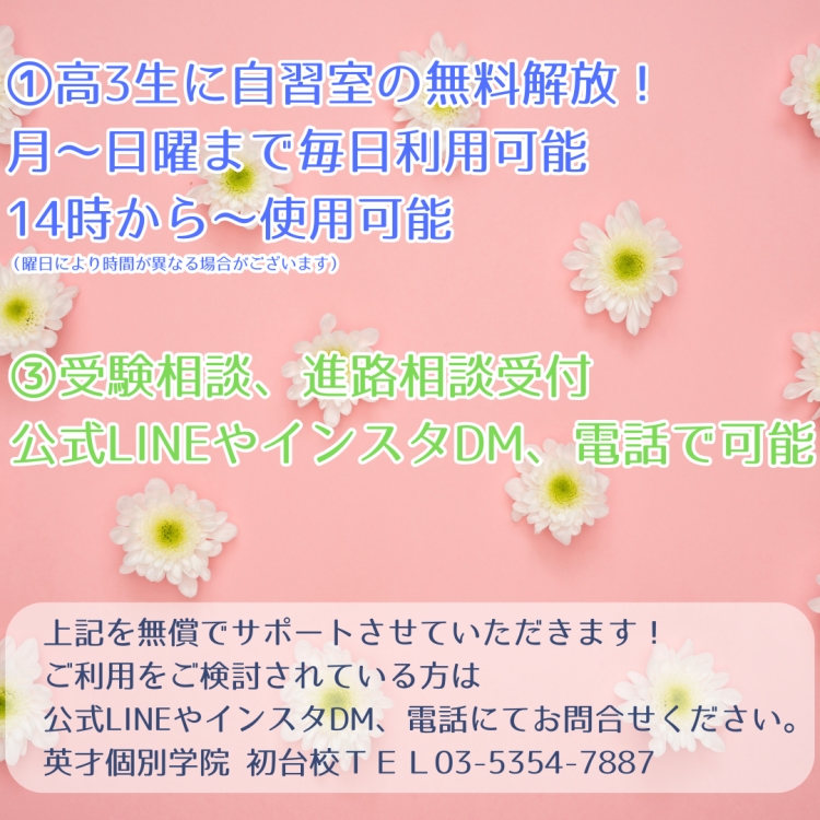 ①高3生に自習室の無料解放!