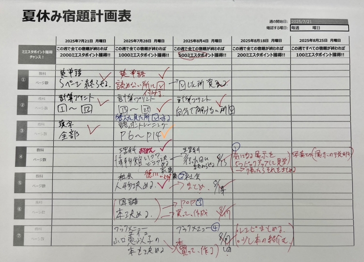 今回は、はやく宿題を終わらせれば、より多くのミエスタポイントがGETできる企画も行いました!