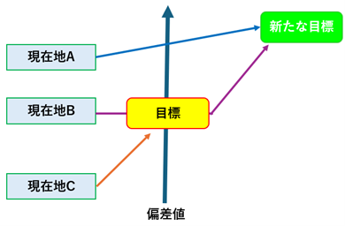 また,「現在地B」や「現在地A」の生徒さんには目標を達成した努力を褒め,