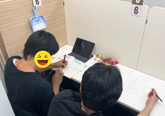 学校のワークや問題集を持参してもらい,解らない問題やミスのあった問題を講師がその場で解説しました。