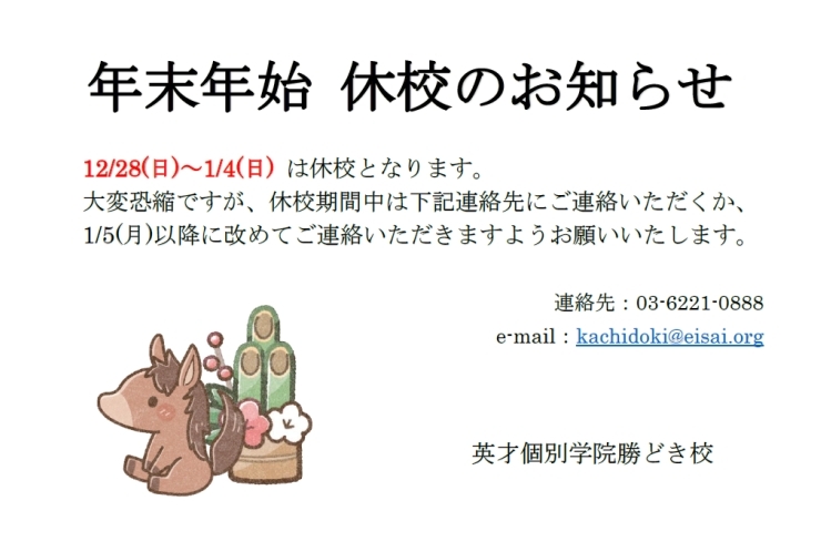 2025.12.26|教室からのお知らせ